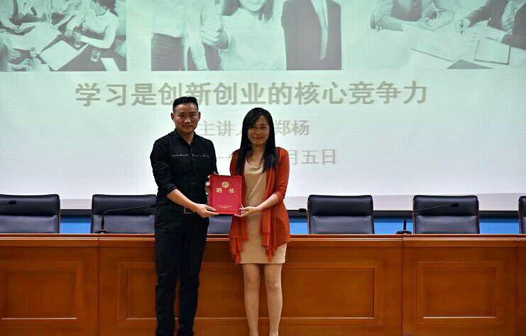 讲座伊始是创新创业导师礼聘仪式,创业学院曹华院长代表江西服装学院为广州红谷皮具研发总监郑杨先生颁发了创新创业导师聘书,曹院长对郑总表示祝贺并感谢他对江西服装学院创新创业工作的大力支持!