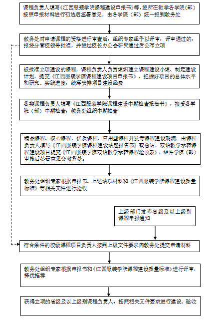 精品课程、核心课程、优质课程、双语教学示范课程、应用型课程开发(申报、建设、验收)等课程建设管理流程