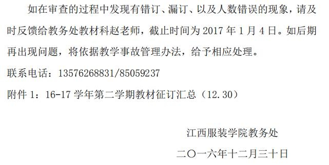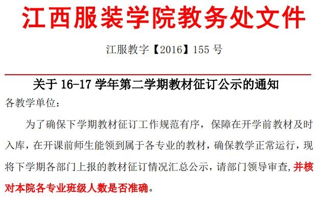 【教材科】关于16-17学年第二学期教材征订公示的通知(江服教字【2016】155号)