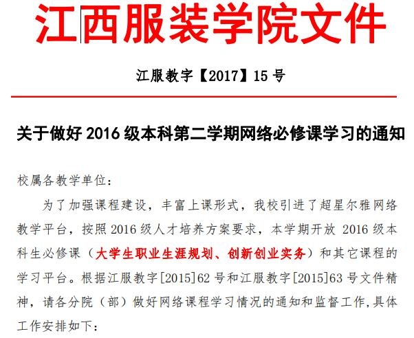 【教学科】关于做好2016级本科第二学期网络必修课学习的通知(江服教字【2017】15号)