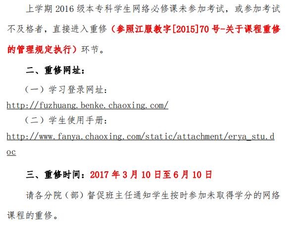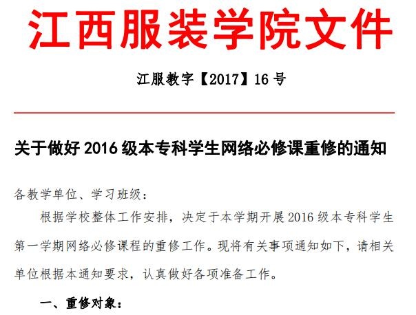【教学科】关于做好2016级本专科学生网络必修课重修的通知(江服教字【2017】16号)