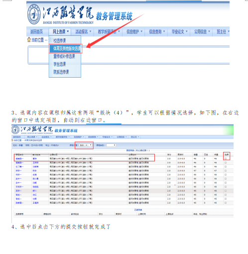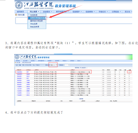 1.体育模块课程、外语模块课程只能选对应班级课表中的上课时间项目;