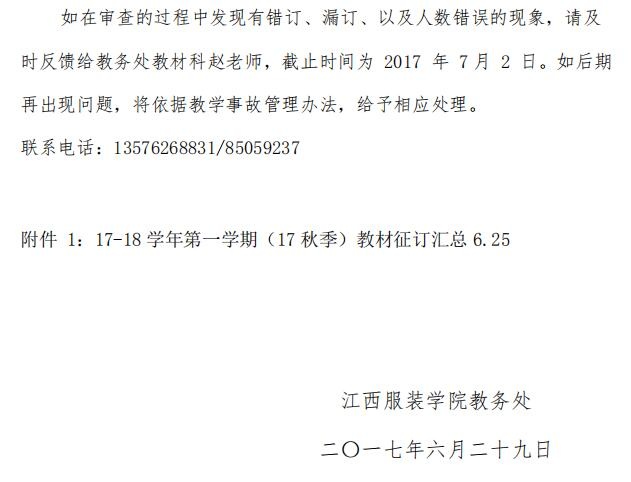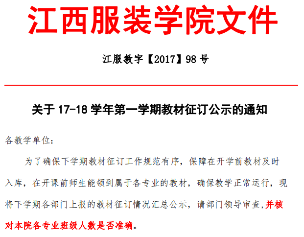 【教材科】关于17-18学年第一学期教材征订公示的通知(江服教字【2017】98号)