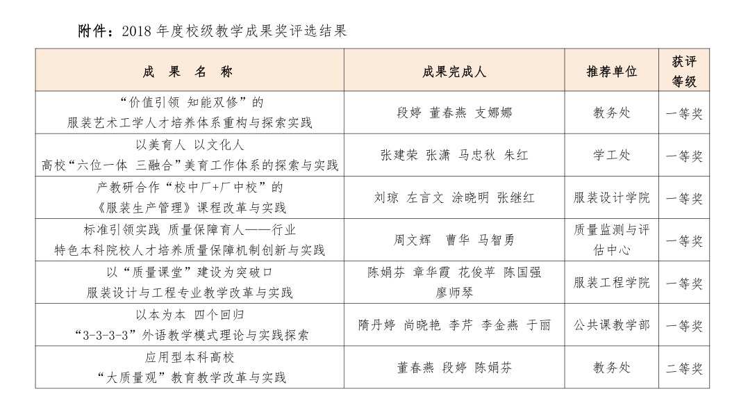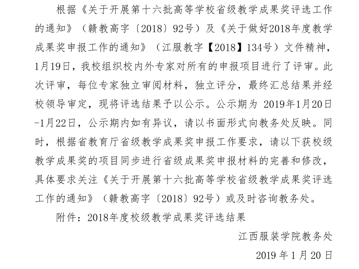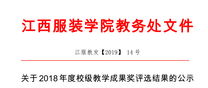 关于公布2018 年度校级教学成果奖评选结果的通知