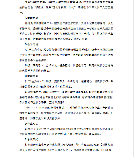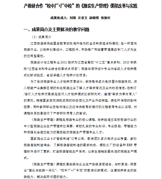产教研合作“校中厂+厂中校”的《服装生产管理》课程改革与实践