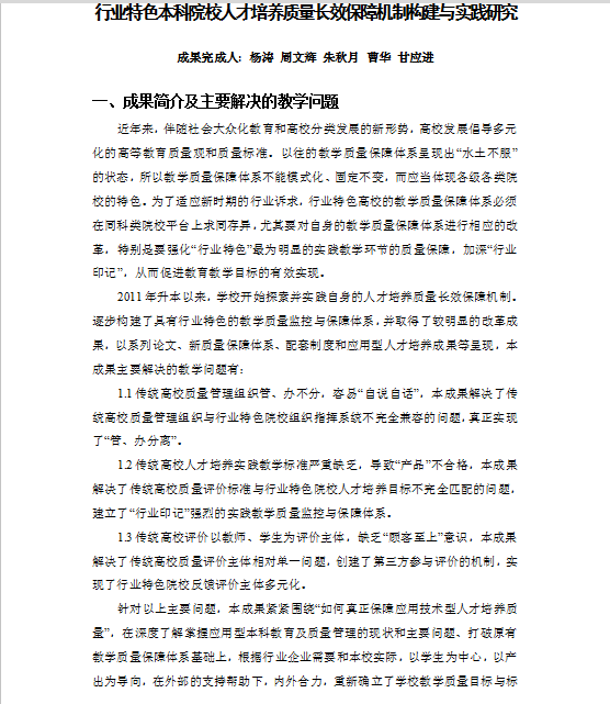 行业特色本科院校人才培养质量长效保障机制构建与实践研究